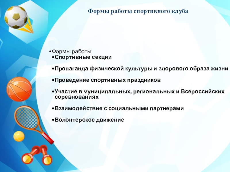 - совершенствование организации различных форм физкультурно- оздоровительной и спортивно- массовой работы с детьми