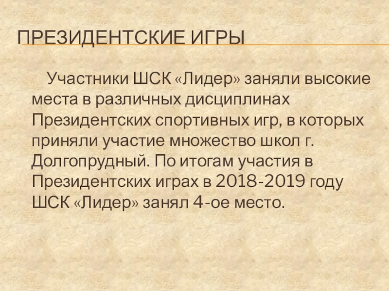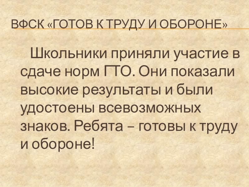физкультурно-спортивного воспитания следующие мероприятия: Всероссийские спортивные соревнования школьников «Президентские состязания» и «Президентские игры», ВФСК «Готов к труду и обороне»(ГТО)»