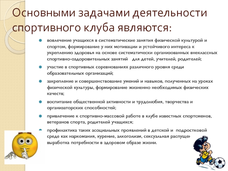 Слайд 3 Основными задачами деятельности спортивного клуба являются: