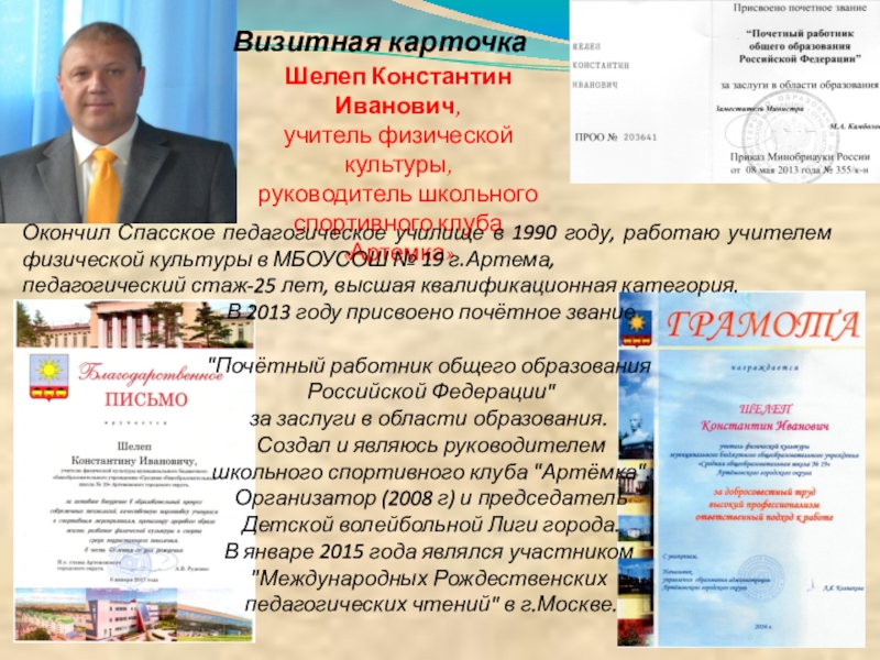 Окончил Спасское педагогическое училище в 1990 году, работаю учителем физической культуры в МБОУСОШ № 19 г.Артема,