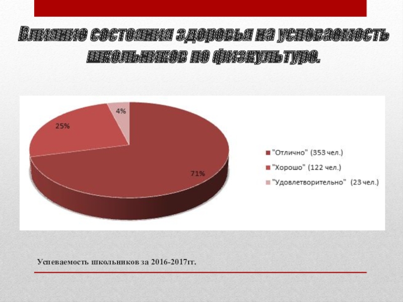 Влияние состояния здоровья на успеваемость школьников по физкультуре. Успеваемость школьников за 2016-2017гг.