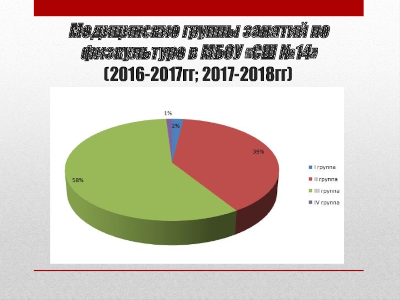 Слайд 7Медицинские группы занятий по физкультуре в МБОУ «СШ №14» (2016-2017гг; 2017-2018гг)