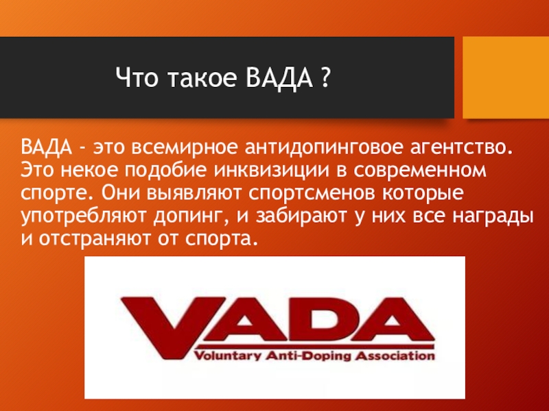 ВАДА - это всемирное антидопинговое агентство. Это некое