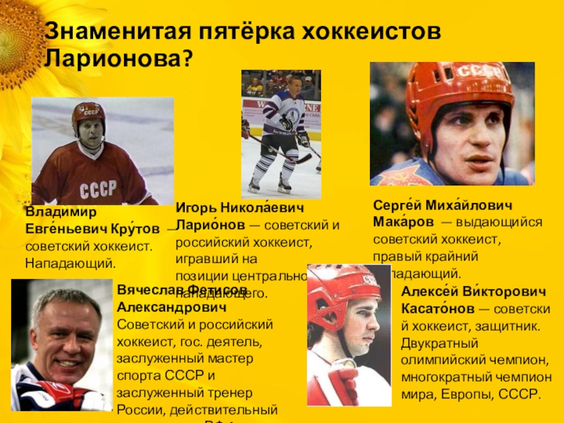 Слайд 70Знаменитая пятёрка хоккеистов Ларионова?