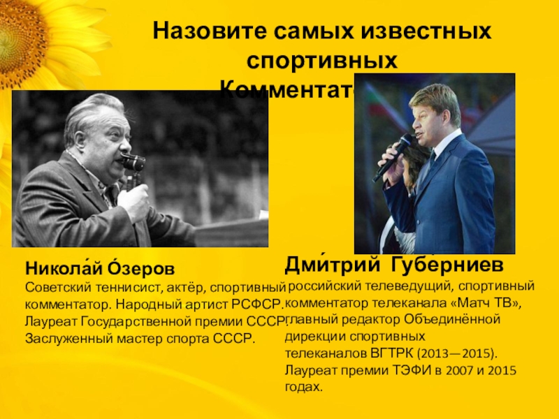 Советский теннисист, актёр, спортивный комментатор. Народный артист РСФСР. Лауреат Государственной
