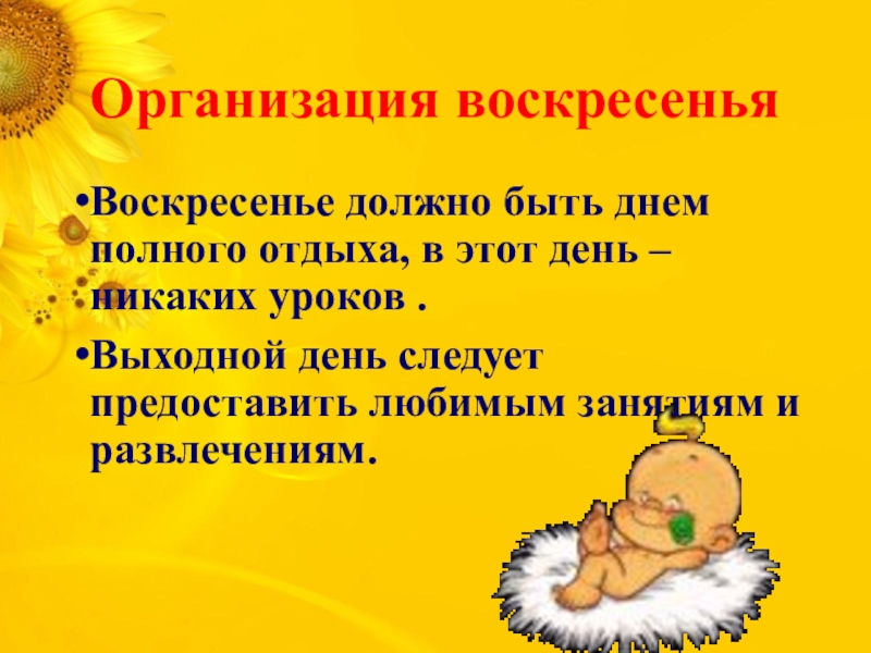 Воскресенье должно быть днем полного отдыха, в этот день –