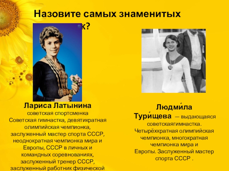 Советская гимнастка, девятикратная олимпийская чемпионка, заслуженный