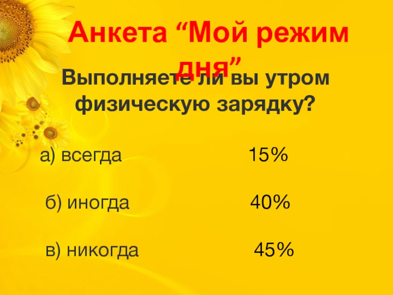 Слайд 5Выполняете ли вы утром физическую зарядку?