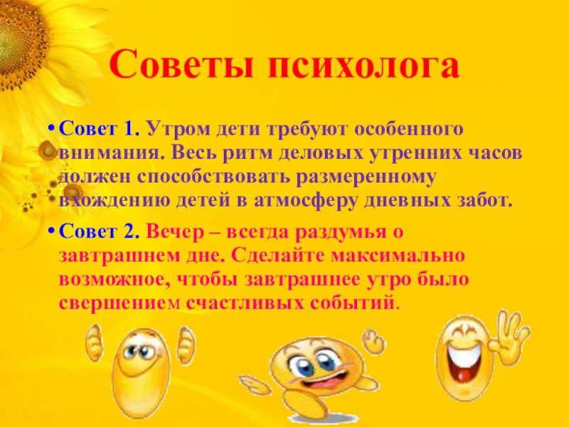 Совет 1. Утром дети требуют особенного внимания. Весь ритм деловых