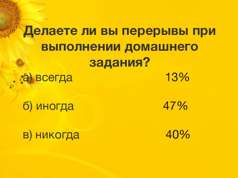 Слайд 8Делаете ли вы перерывы при выполнении домашнего задания?