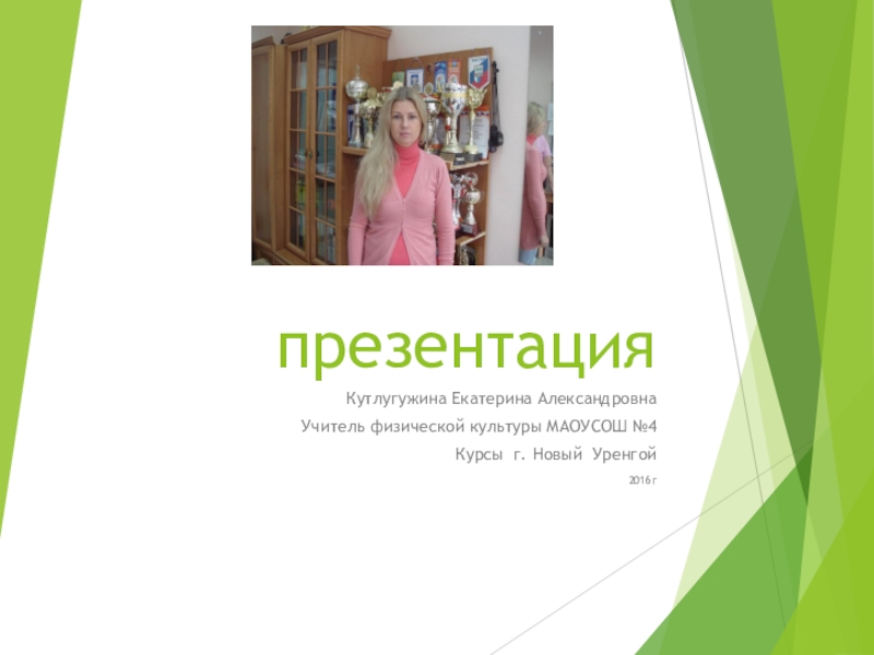 презентацияКутлугужина Екатерина АлександровнаУчитель физической культуры МАОУСОШ №4Курсы г. Новый Уренгой2016г