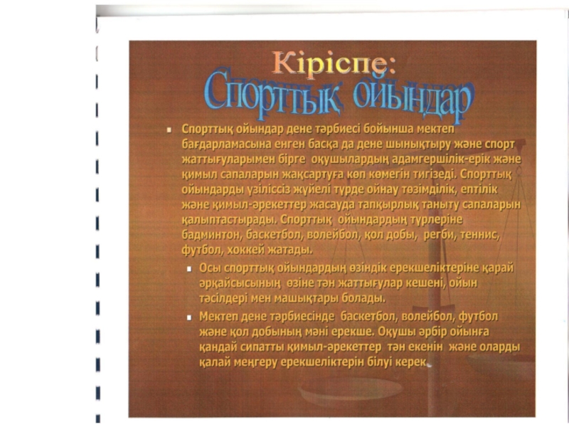 Презентация тақырыбы Ойын техникасын үйренуге арнайы жаттығулар Спорт