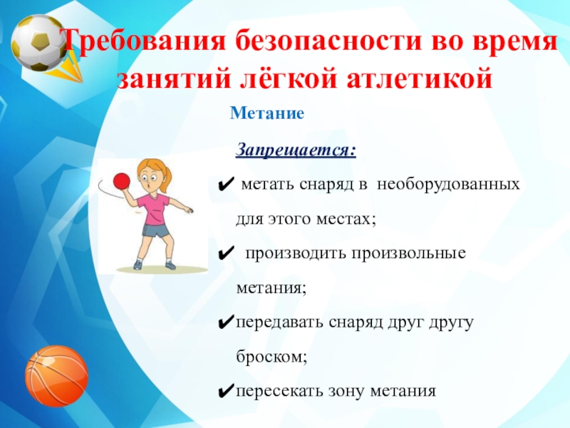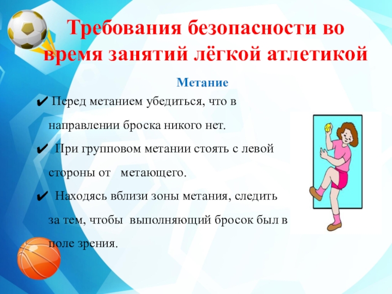 Слайд 14Требования безопасности во время занятий лёгкой атлетикой