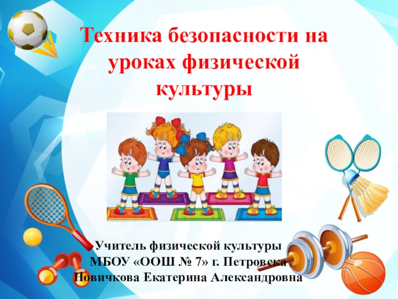 Техника безопасности на уроках физической культурыУчитель физической культуры МБОУ «ООШ № 7» г. Петровска Новичкова Екатерина