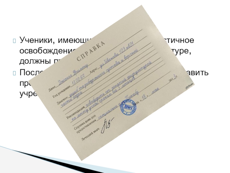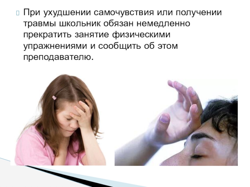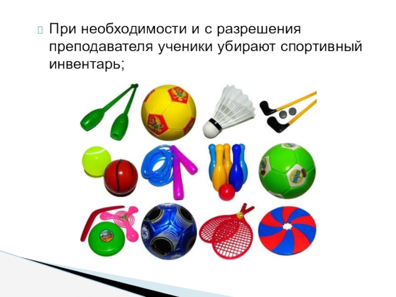 В случае если преподаватель физкультуры обнаружил несоответствие каких-либо объектов, связанных с занятиями, установленным нормам, он должен незамедлительно уведомить об этом руководство школы и прекратить использовать их в уроках до устранения опасности.