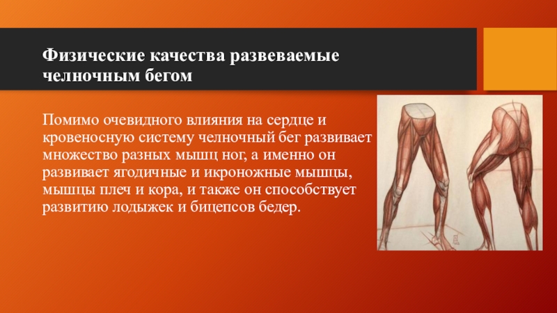 Физические качества развеваемые челночным бегомПомимо очевидного влияния на сердце и кровеносную систему челночный бег развивает множество разных
