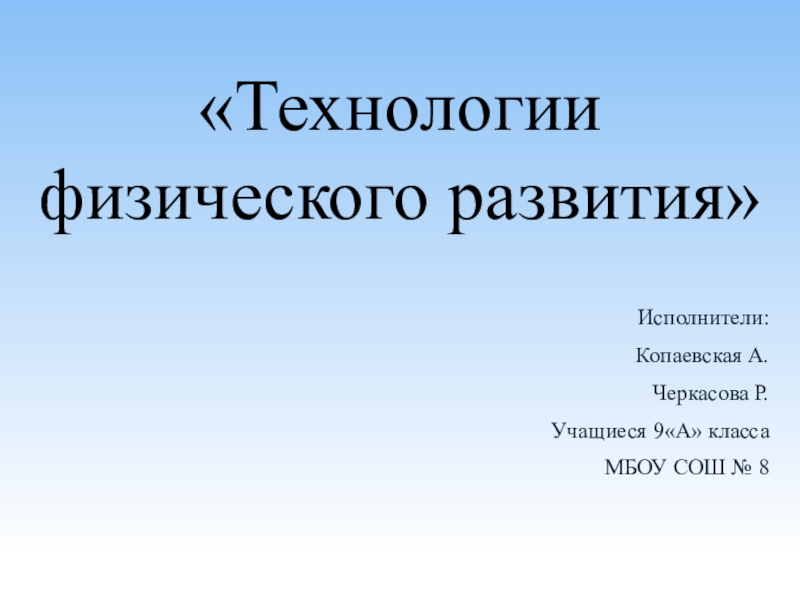 «Технологии физического развития»Исполнители:Копаевская А.Черкасова Р.Учащиеся 9«А» классаМБОУ СОШ № 8