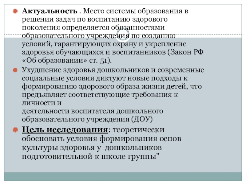 Слайд 2Актуальность . Место системы образования в решении задач по воспитанию здорового