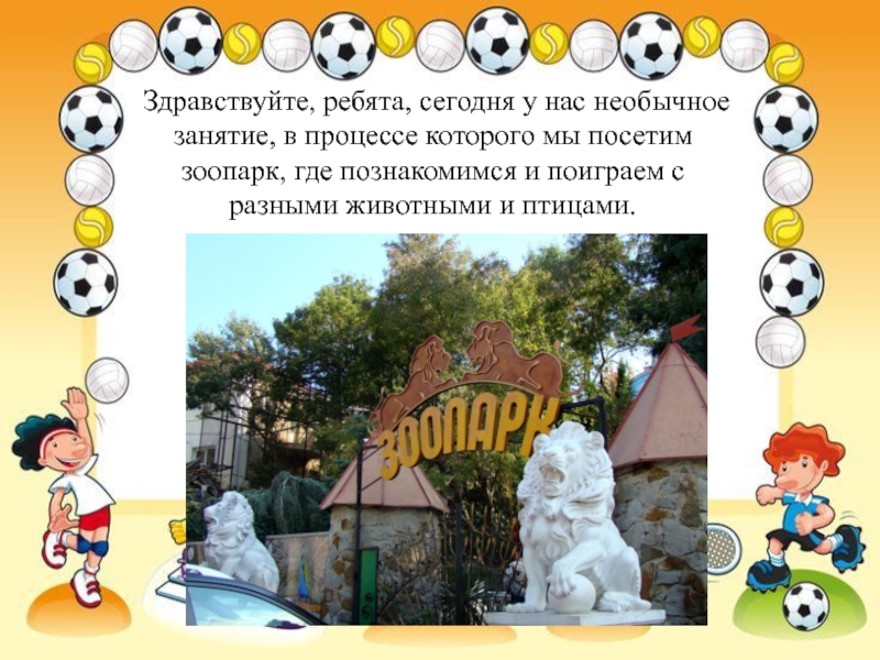 посетим зоопарк, где познакомимся и поиграем с разными животными и птицами.