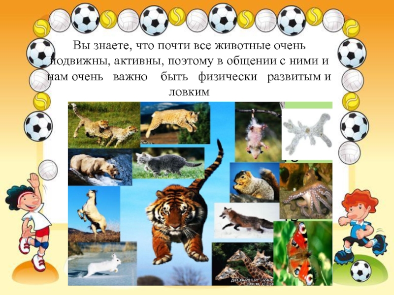 Слайд 5Вы знаете, что почти все животные очень подвижны, активны, поэтому в