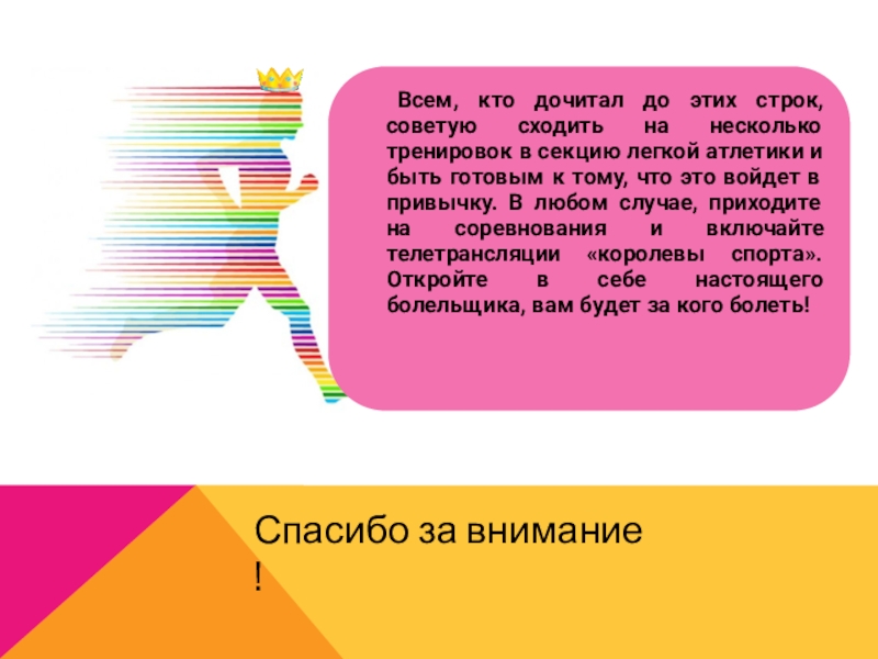 Слайд 23 Всем, кто дочитал до этих строк, советую сходить на несколько тренировок
