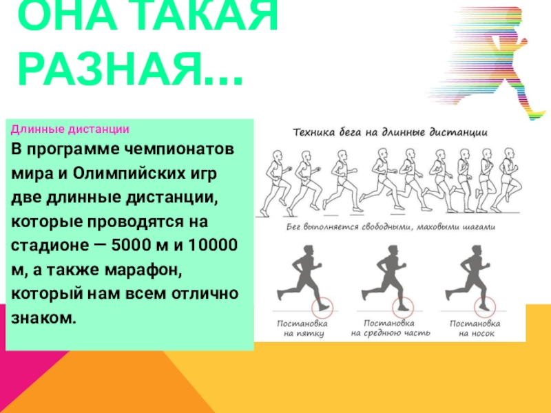 длинные дистанции, которые проводятся на стадионе — 5000 м и 10000 м, а также марафон, который нам всем отлично знаком.