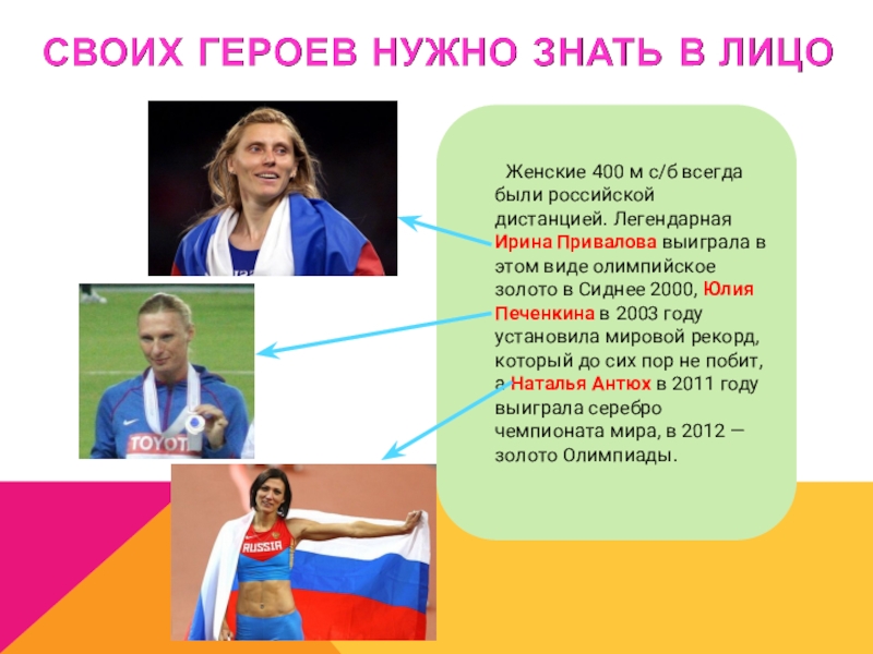 Слайд 19 Еще один конек сборной России — женский бег на средние дистанции.