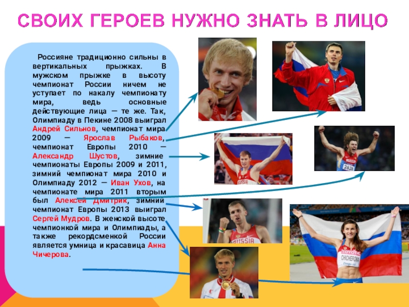 Слайд 15 Россияне традиционно сильны в вертикальных прыжках. В мужском прыжке в высоту