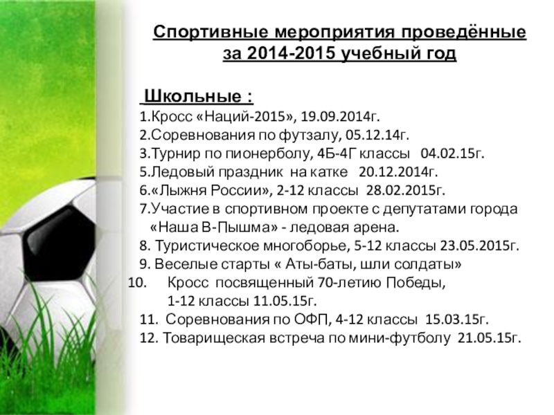 Спортивные мероприятия проведённые за 2014-2015 учебный год
