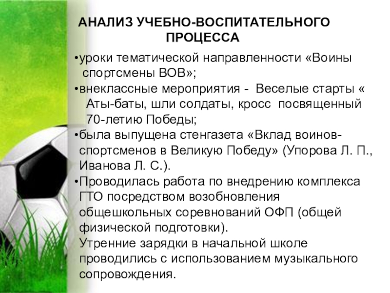 Составитель отчета и презентации: Упорова Л. П. – руководитель ШМО учителей физической культуры