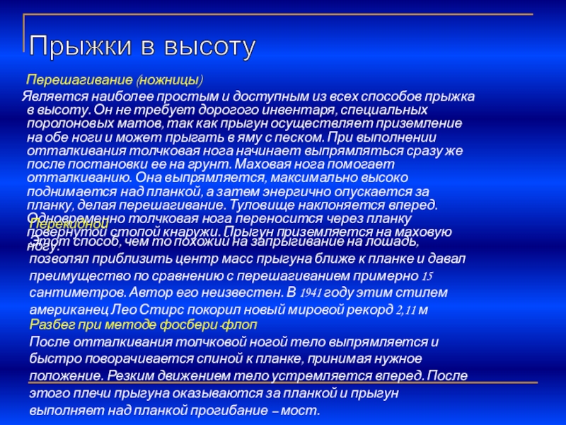 Перешагивание (ножницы)   Является наиболее простым и доступным из всех способов прыжка в