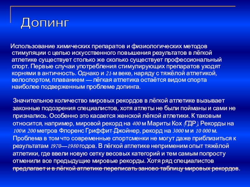 Использование химических препаратов и физиологических методов стимуляции с целью искусственного повышения результатов в лёгкой