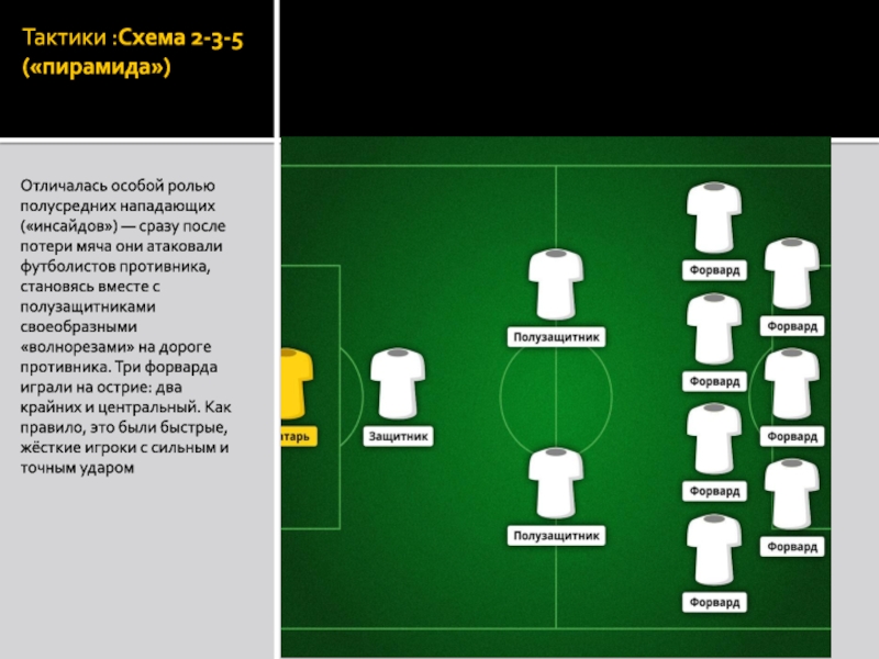 Слайд 4Тактики :Схема 2-3-5 («пирамида»)