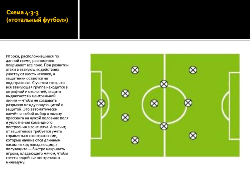 Слайд 8Схема 4-3-3 («тотальный футбол»)