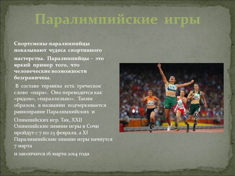 Слайд 35Спортсмены-паралимпийцы показывают чудеса спортивного