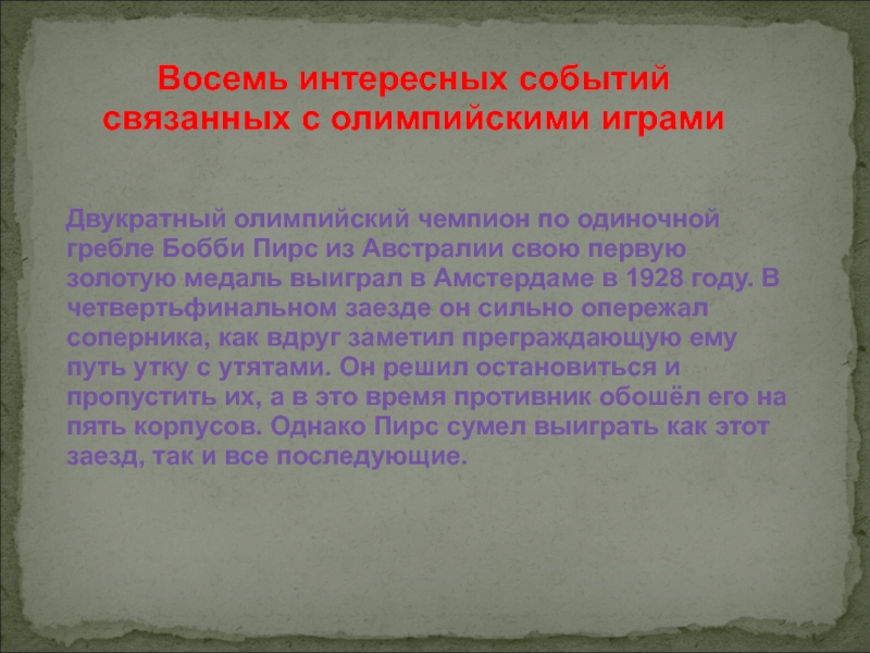 Слайд 23Двукратный олимпийский чемпион по одиночной гребле Бобби Пирс из Австралии свою