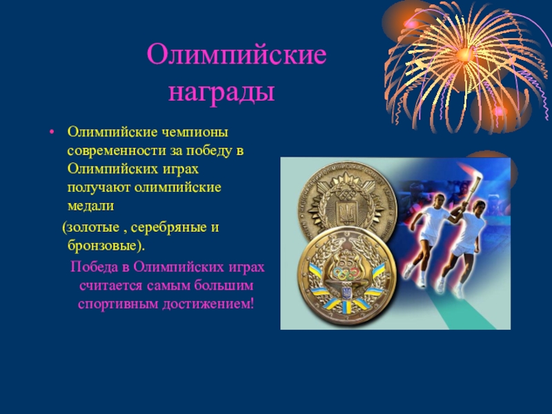 Слайд 20 Олимпийские награды