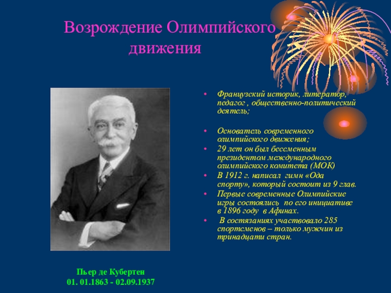 Основатель современного олимпийского движения;