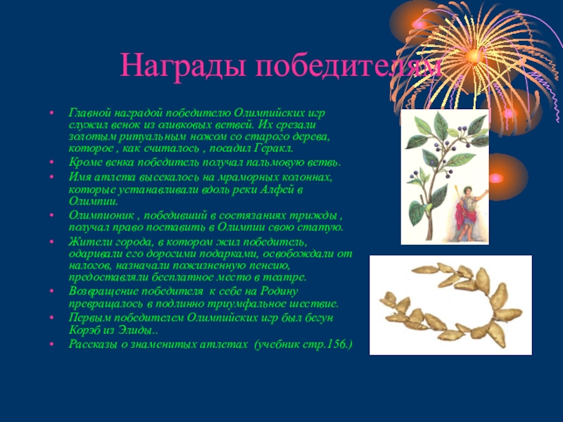 Главной наградой победителю Олимпийских игр служил венок из оливковых ветвей.