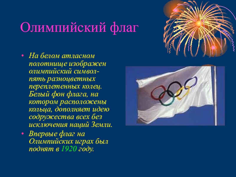 Впервые флаг на Олимпийских играх был поднят в 1920 году.