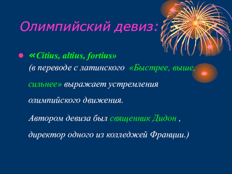 Автором девиза был священник Дидон , директор одного из колледжей Франции.)