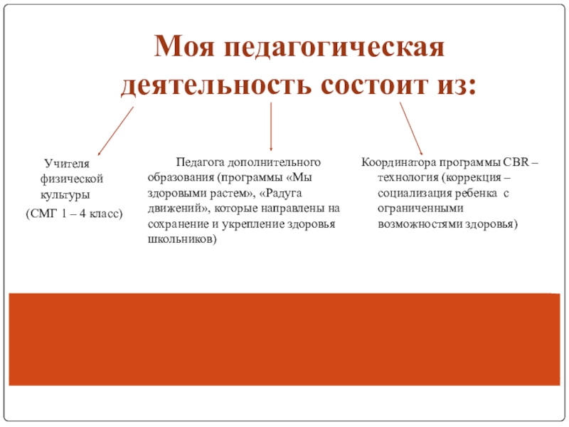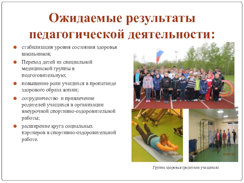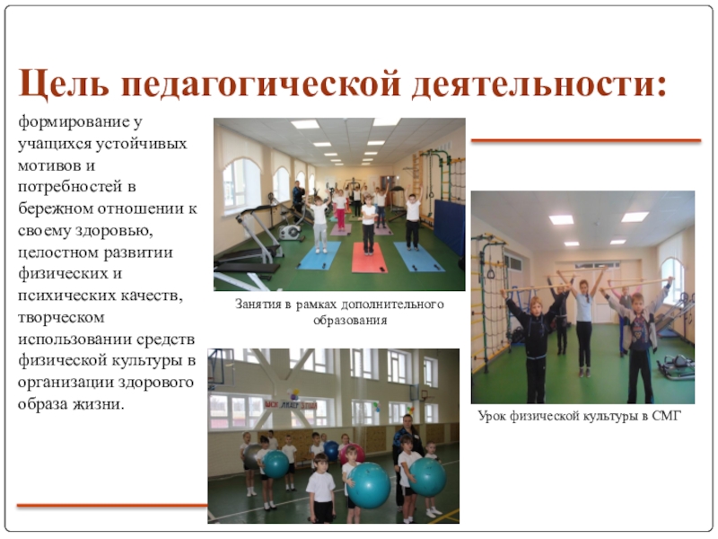 Педагога дополнительного образования (программы «Мы здоровыми растем», «Радуга движений», которые направлены на сохранение и укрепление здоровья школьников)