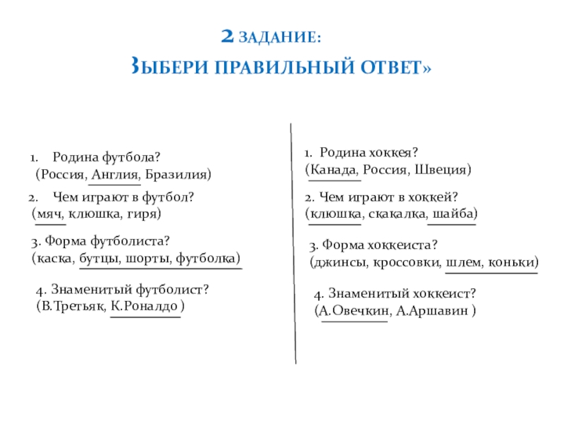 2. Чем играют в хоккей?