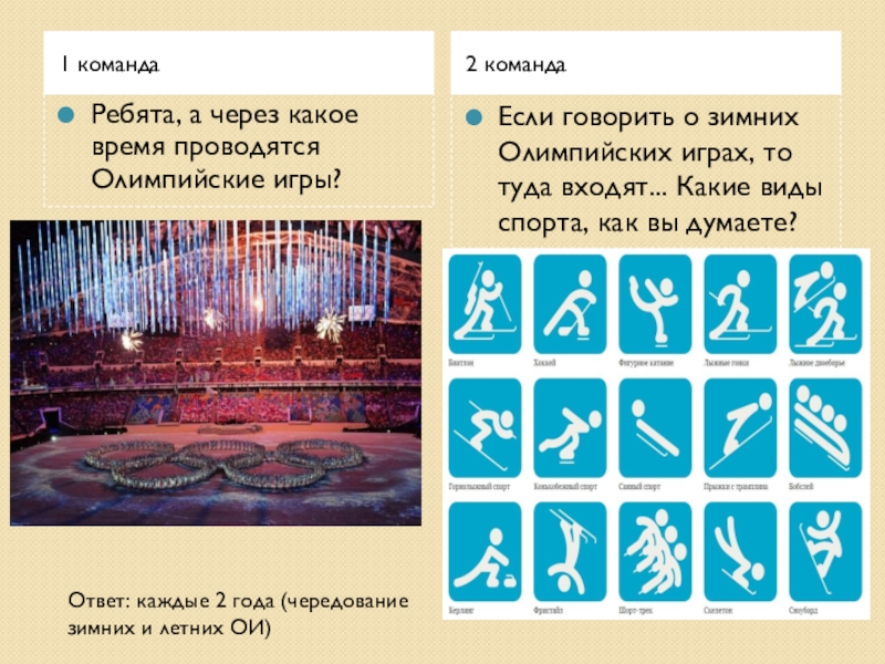 Ответ: каждые 2 года (чередование зимних и летних ОИ)