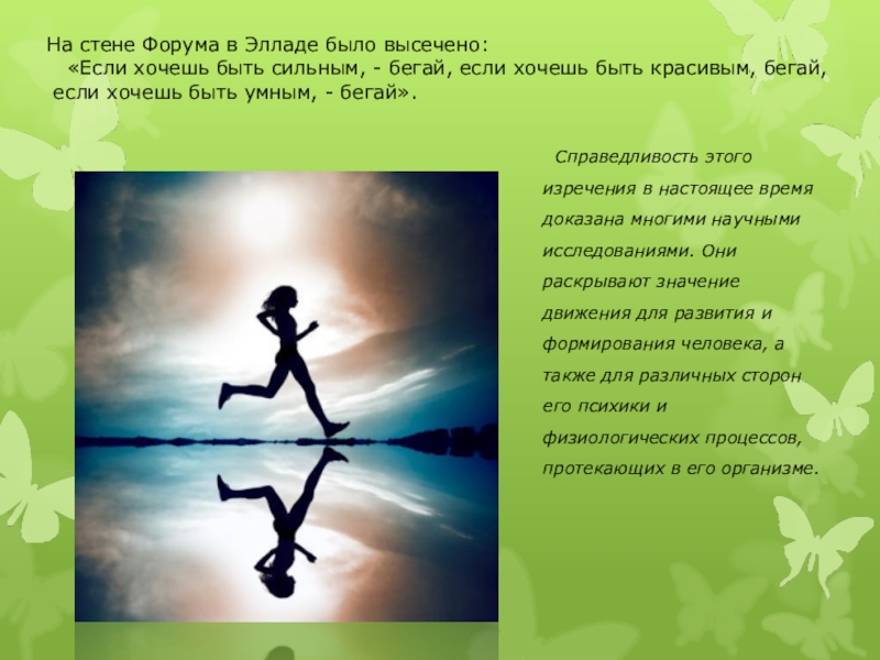 Справедливость этого изречения в настоящее время доказана многими научными исследованиями. Они раскрывают значение движения для развития и формирования человека, а также для различных сторон его психики и физиологических процессов, протекающих в его организме.