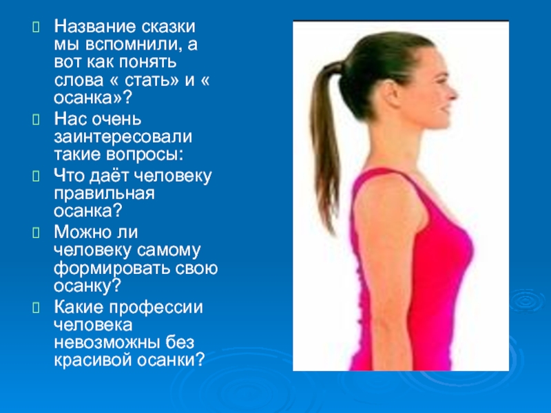 правильность осанки и оказалось, что почти у всех есть проблемы с осанкой.