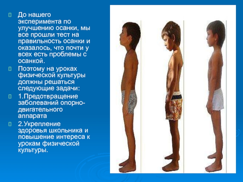 Слайд 6До нашего эксперимента по улучшению осанки, мы все прошли тест на