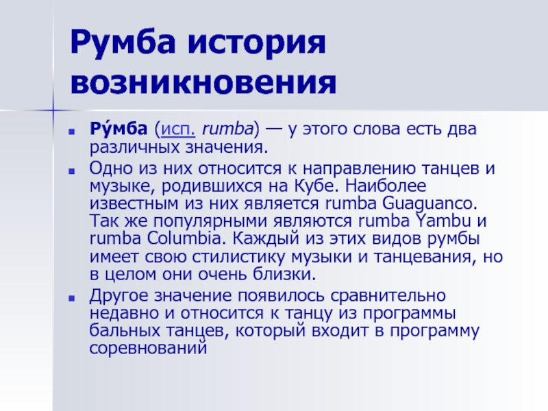 Ру́мба (исп. rumba) — у этого слова есть два различных значения.