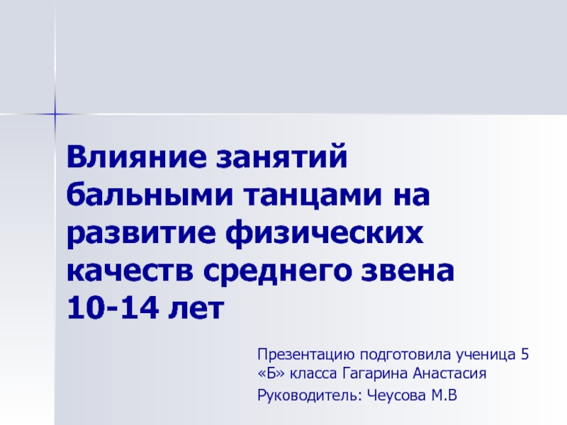 Слайд 1Влияние занятий бальными танцами на развитие физических качеств среднего звена