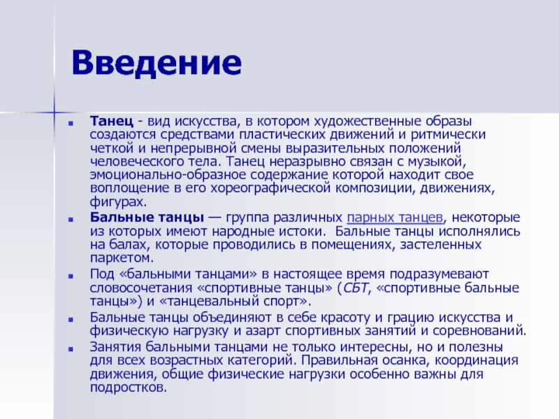 Танец - вид искусства, в котором художественные образы создаются средствами пластических движений